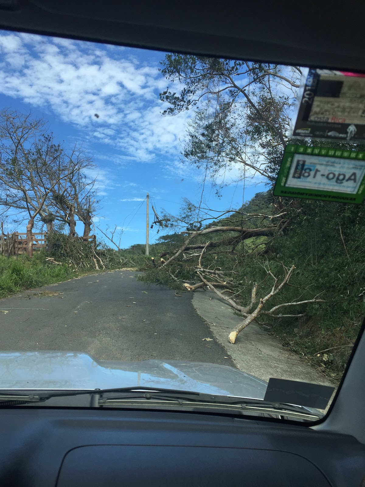 Sur le trajet, je dois sortir plusieurs fois de la voiture pour écarter les branches et troncs qui jonchent la chaussée et visiblement, cela fait beaucoup rire les locaux.