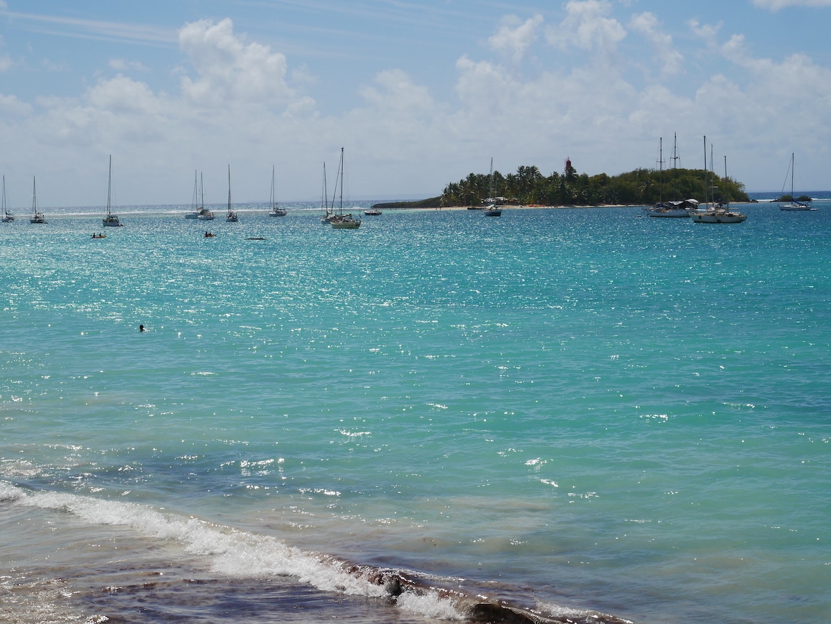 Quand nous y étions, il y avait bien moins de monde que sur les îlets Pigeon. Mon beau-père est parti à la nage jusqu’à l’îlet et apparemment ça valait plutôt le coup pour les fonds marins. Nous nous étions promis d’y revenir plus tard avec le frère de Romain mais c’était sans compter sur le confinement bien sûr.
